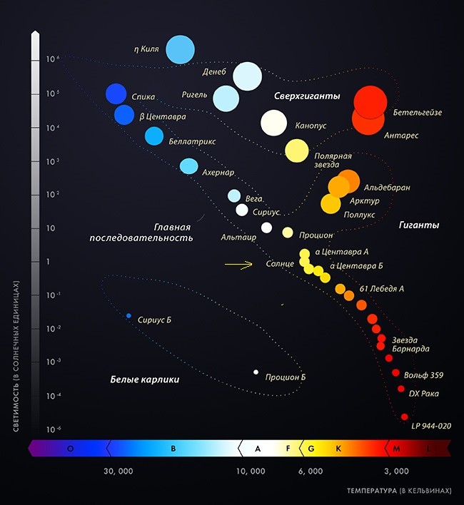 Желтые карлики — небольшие звезды, масса которых составляет 0,8–1,2 солнечной. Это светила так называемой главной последовательности.