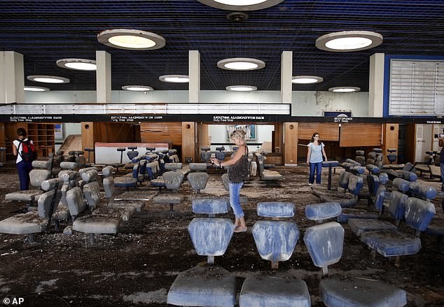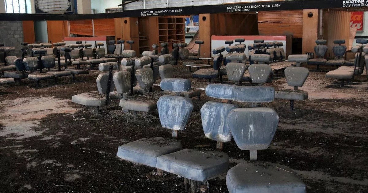 Несмотря на отсутствие нескольких букв, большая вывеска аэропорта остаётся читаемой. Однако единственные признаки жизни в эти дни — голуби, воркующие на крыше, и завывание ветра, проникающего сквозь разбитые окна.