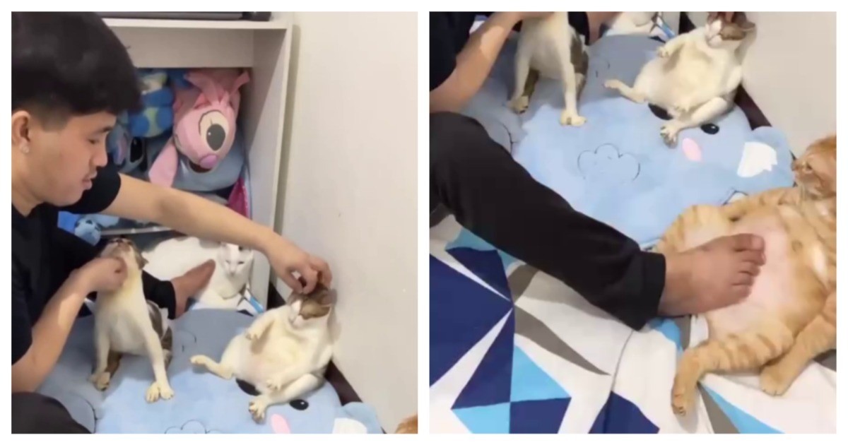 - Кошка пытается избежать поцелуя