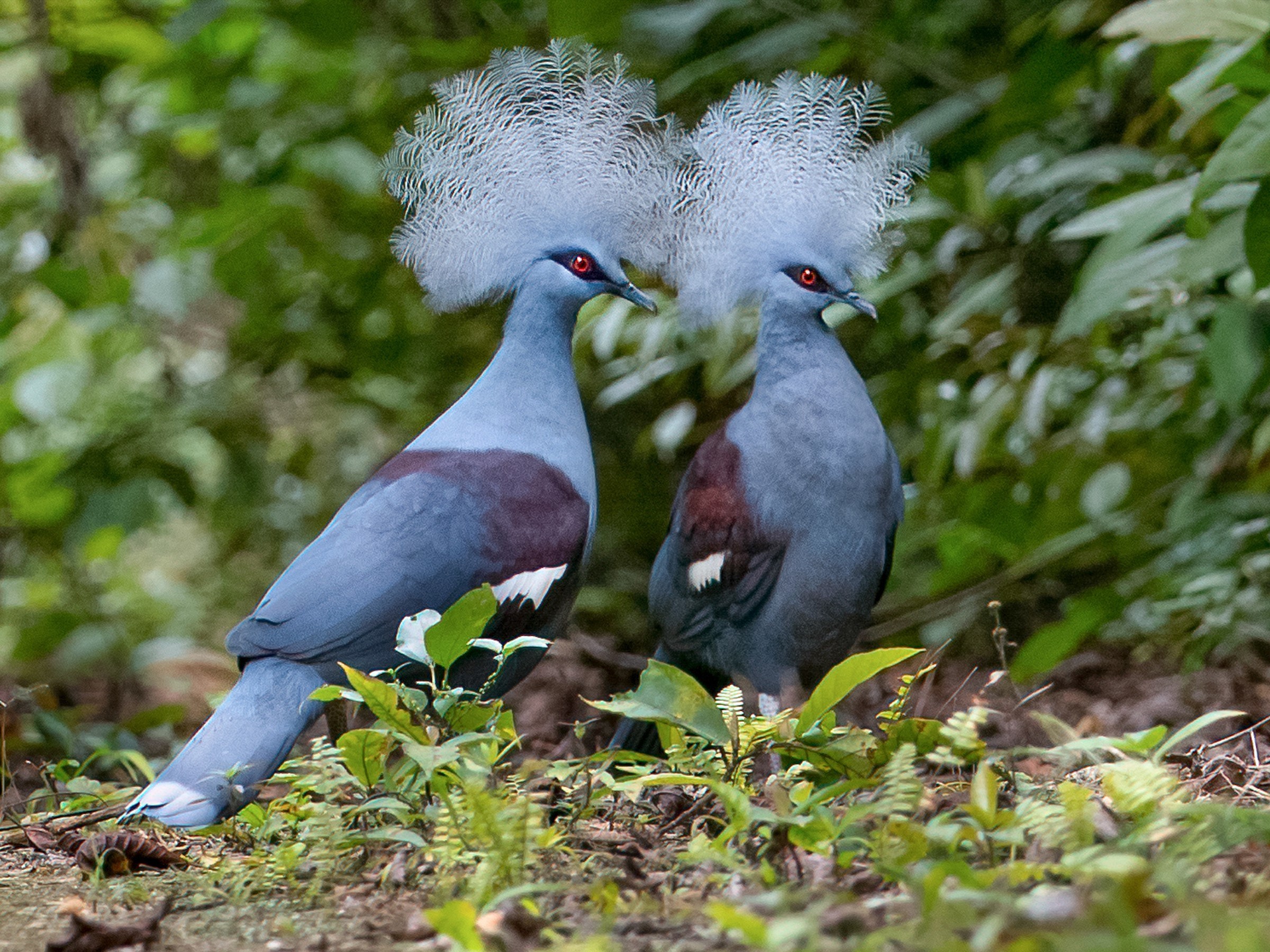 Если вам доведётся увидеть эту великолепную птицу в зоопарке, вы вряд ли свяжете её с голубем. Он не только значительно крупнее и достигает размеров средней курицы, но и обладает эффектным ажурным хохолком на голове, напоминающим перья павлина.