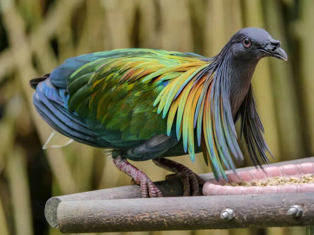 Металлический переливающийся блеск и длинные перья на шее этой птицы обладают инопланетной красотой. Этот редкий вид голубей обитает исключительно на Андаманских и Никобарских островах в Индии.