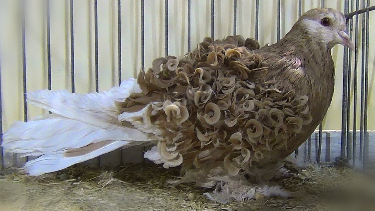 Эта одомашненная порода голубей также уникальна. Кончики перьев на их крыльях от природы завиты в изящные локоны. У некоторых разновидностей даже перья на лапках имеют волнистую структуру.