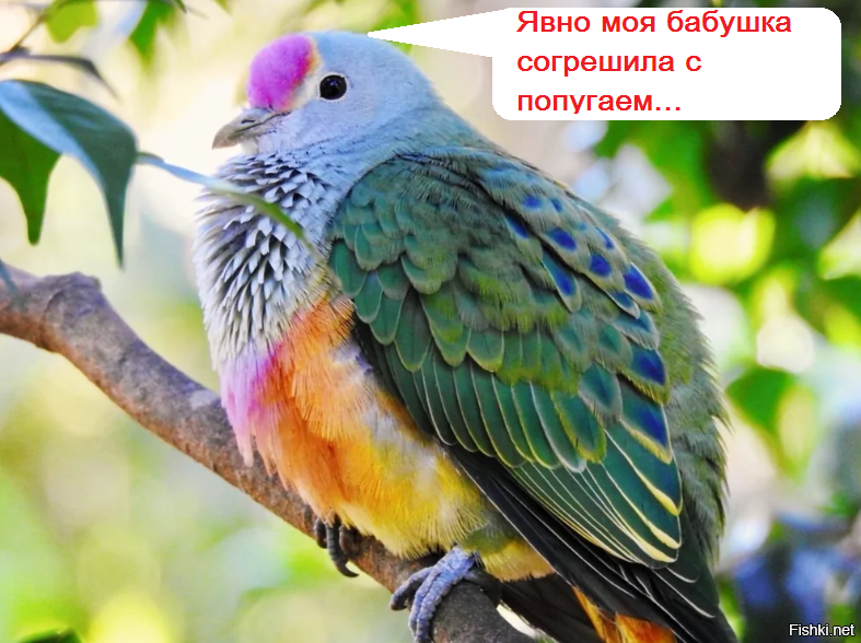 1. Розовошапочный пёстрый голубь (Ptilinopus regina)
