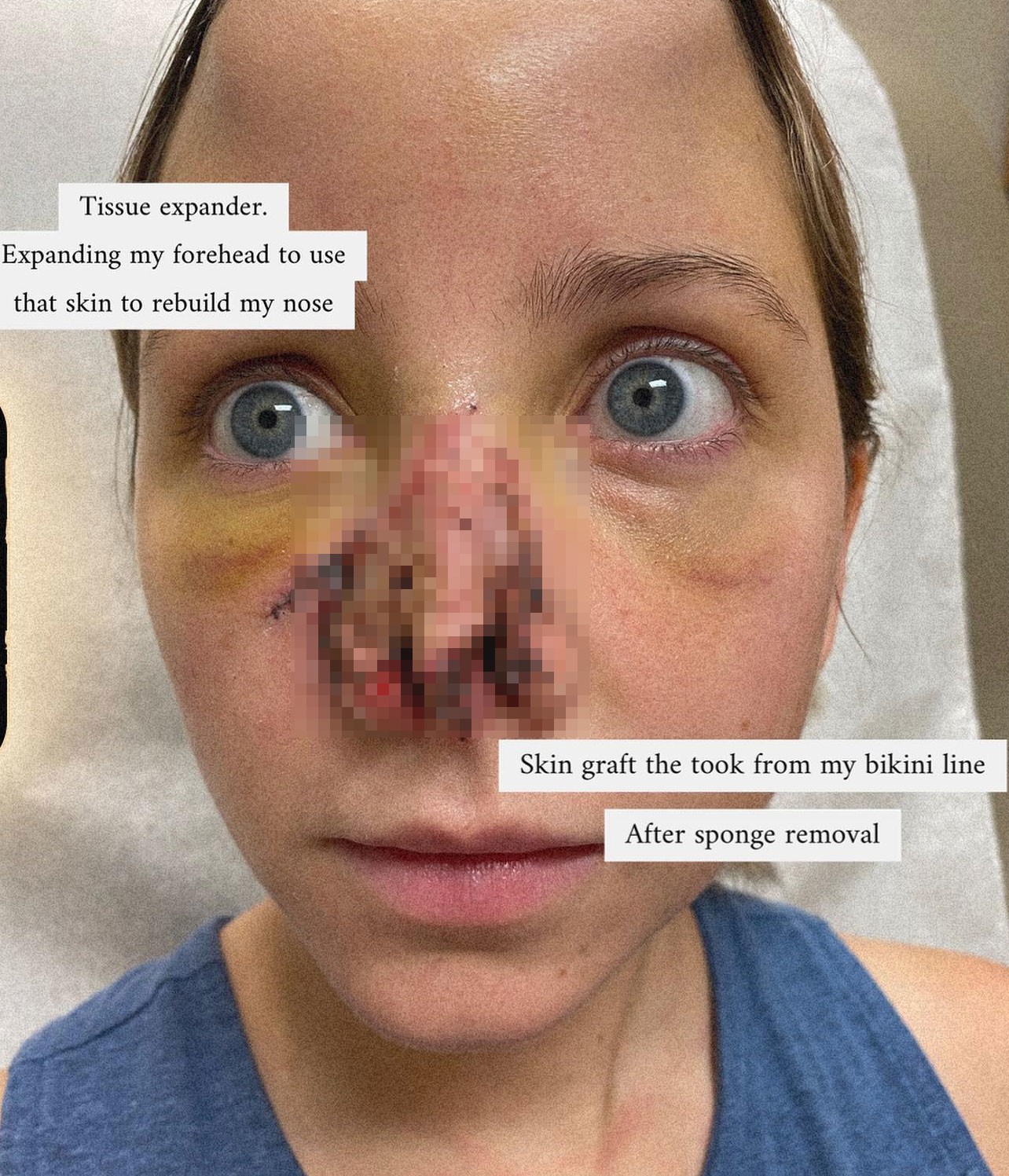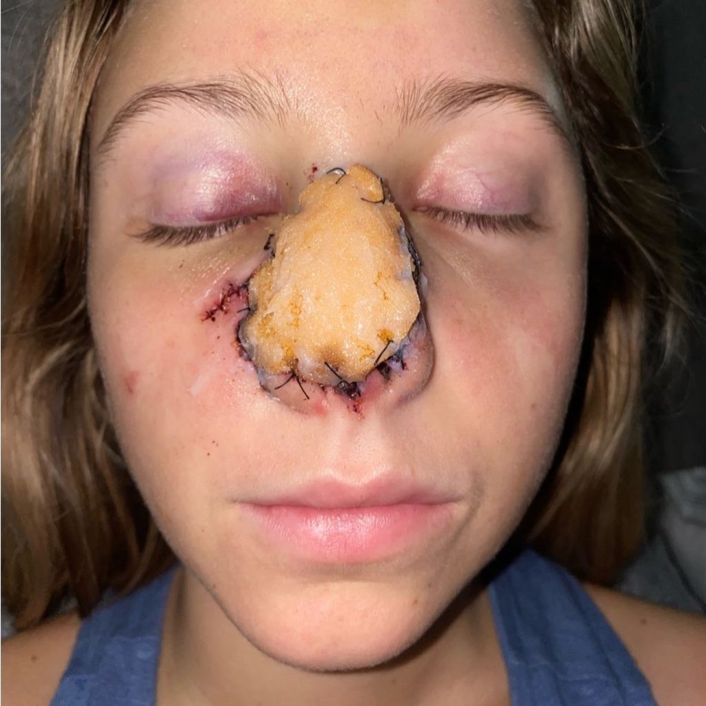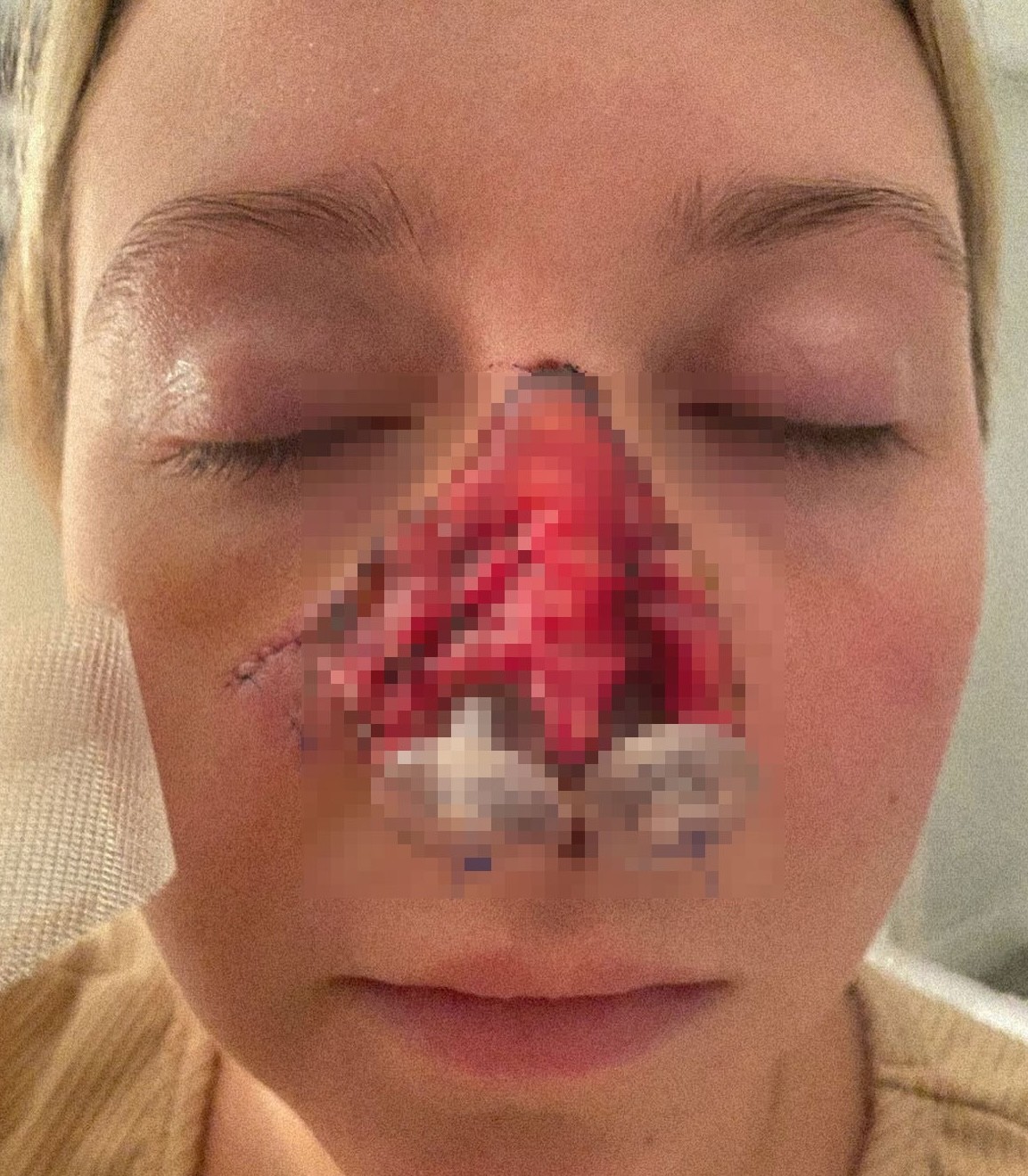 Женщине потребовалось 16 операций, чтобы восстановить нос после укуса собаки