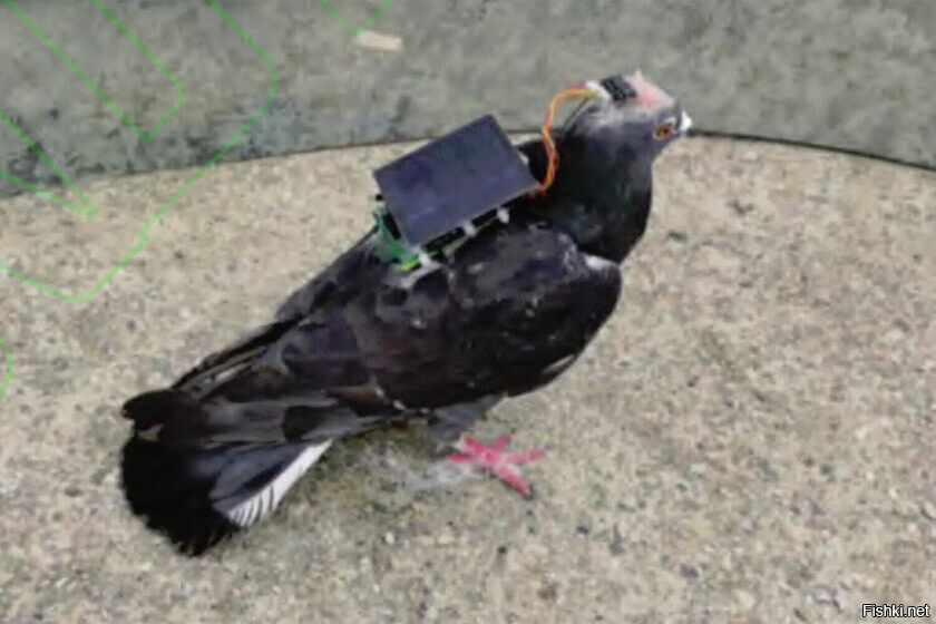 Как утверждают представители биотех-лаборатории, полётом голубя можно управлять дистанционно через имплантированные в мозг птицы электроды.