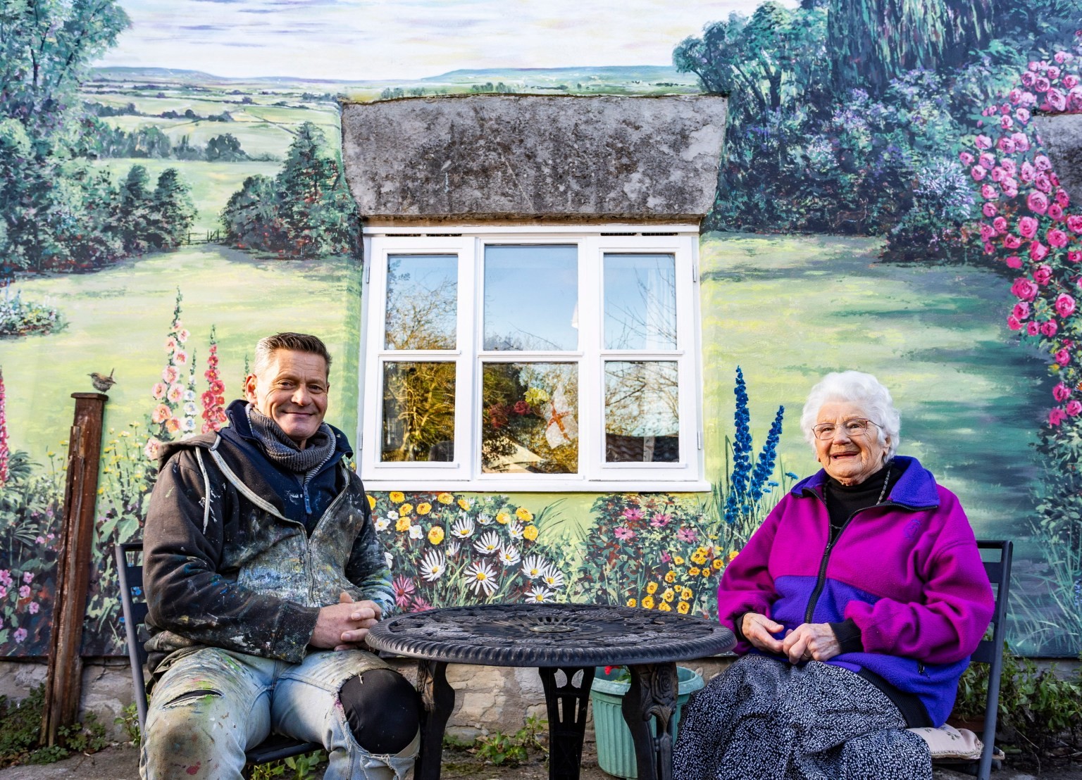 Мюриэл, бывшая работница фабрики, уже не может поливать растения или пропалывать сорняки. Но фреска позволила ей «сидеть с чашечкой кофе и любоваться своим садом на стене».