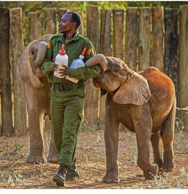 И даже такие огромные дети поначалу едят из бутылочки