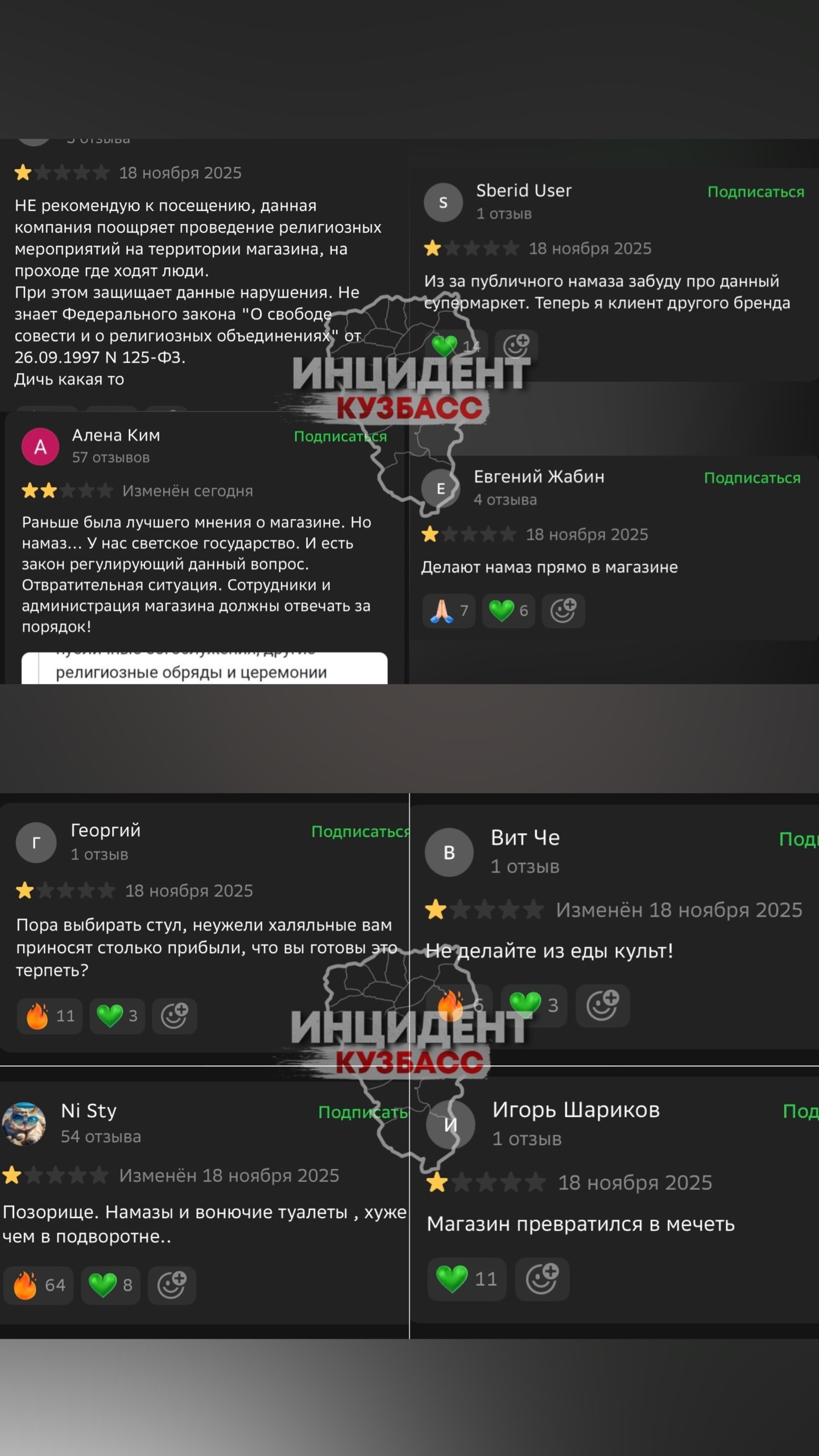 Жители Кемерова активно выражали негодование на страницах магазина в социальных сетях. В отзывах люди жаловались, что иностранцы по каким-то своим соображениям превращают супермаркет в мечеть.