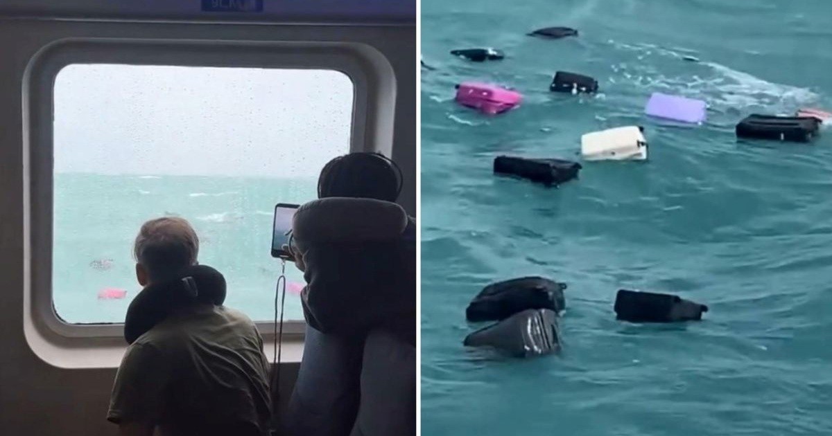 Багаж, размещённый на верхней палубе, не был должным образом закреплён. Из-за плохих погодных условий он упал в воду.