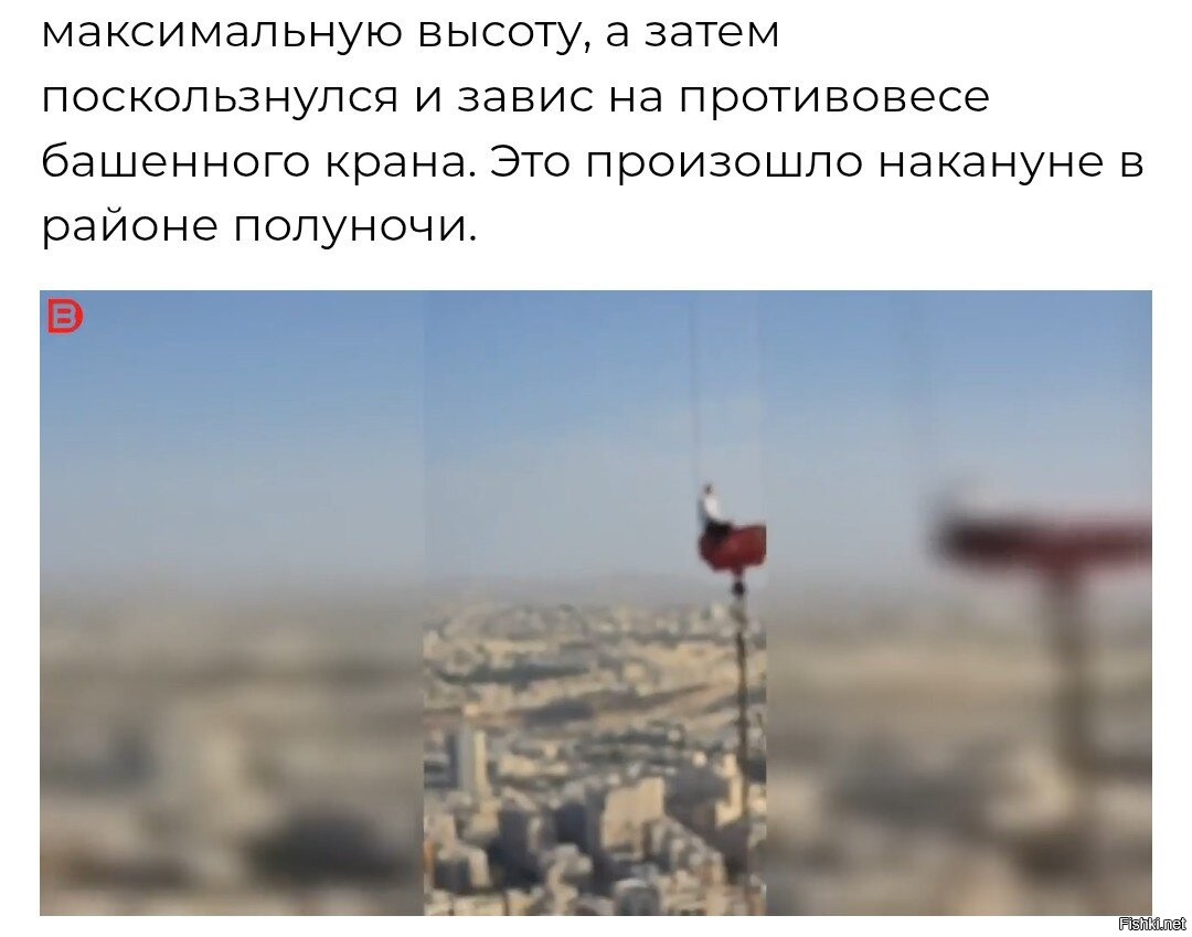 Мужчина, первым заметивший подростка и вступивший с ним в контакт, рассказывает: у него сложилось впечатление, что тот хотел посмотреть красивый вид. Юноша перелез через забор стройплощадки, поднялся на максимальную высоту, а затем поскользнулся и завис на противовесе башенного крана. Это произошло накануне в районе полуночи.