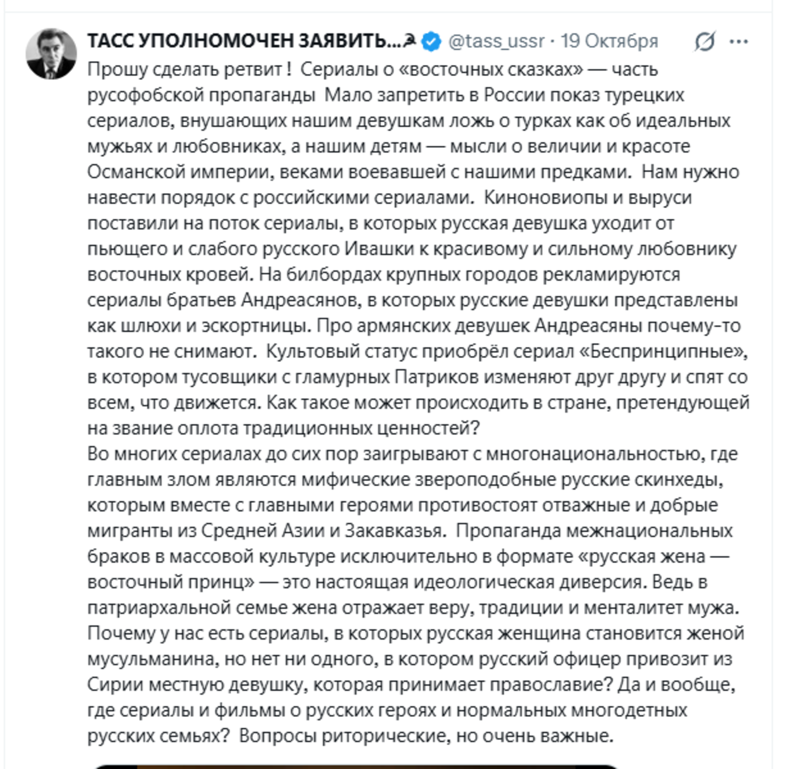И хотя в Госдуме подчёркивают, что введение цензуры никак не ограничивает творчество отечественных кинорежиссёров, интернет-пользователи не сомневаются, что под описание подходят все, в которых показывают семью, отношения, культуру и историю не так, как принято в РФ. А вот будут ли удаляться с экранов так любимые многими российскими женщинами турецкие и им подобные сериалы, вопрос остаётся открытым.