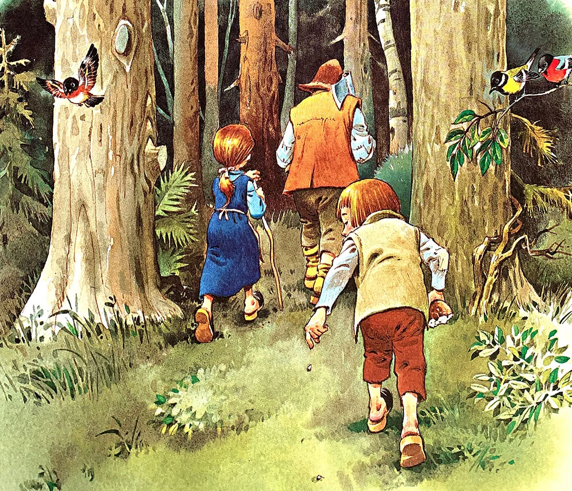 Отец спросил его: «Гензель, что ты там зеваешь и отстаешь? Изволь-ка прибавить шагу».