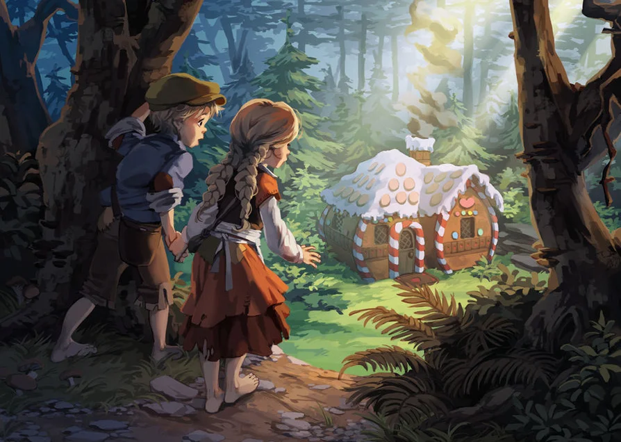 Гензель и Гретель братьев Гримм — это сказка о братике и сестричке, которых во времена голода отец и мачеха увели в лес, да там и оставили. Первый раз благодаря Гензелю детям удалось найти дорогу домой, а во второй раз они набрели на избушку злой ведьмы, которая хотела их съесть, но Гретель удалось обмануть старуху...
