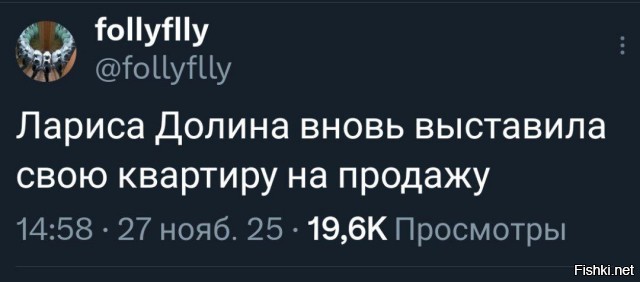 4. Не волнуйтесь, это сатирическая новость сайта "Панорама". Лариса Долина не выставила повторно квартиру на продажу, она всего лишь вернула себе квартиру и трёхмиллионную комиссию с риэлторов, заключавших сделку