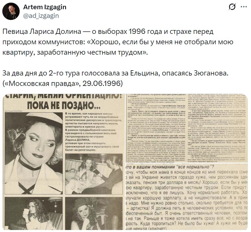 14. В 1996 году певица боялась, что квартиру отберут коммунисты