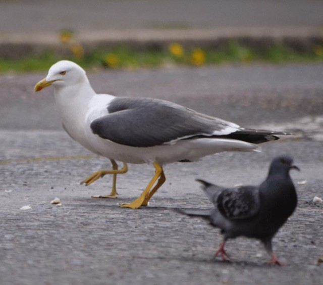Пока остальные птицы по старинке пользуются двумя лапами, этот продвинутый экземпляр явно скачал какое-то читерское обновление на устойчивость. Сразу видно, кто здесь главный босс на районе и гроза всех пляжных чебуреков. Неудивительно, что голубь на переднем плане так поспешно ретируется — он явно не хочет проверять, как быстро бегает эта трехногая машина апокалипсиса.