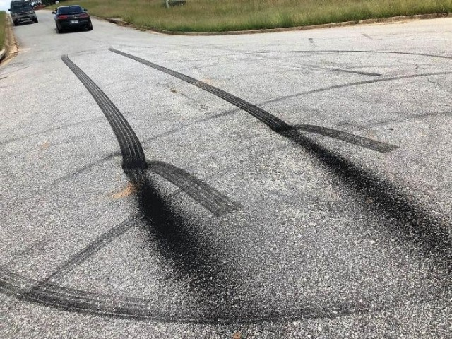 Глядя на этот асфальт, остается только гадать, куда же делся автомобиль. Ехал-ехал, и вдруг — бац! — следы обрываются, будто машина растворилась в воздухе. Либо водитель разогнался так сильно, что отправился прямиком в 2050 год, либо он просто устал от ям на дорогах и решил переключиться на авиарежим. Наглядный пример того, на что способны люди, когда очень сильно опаздывают к ужину!