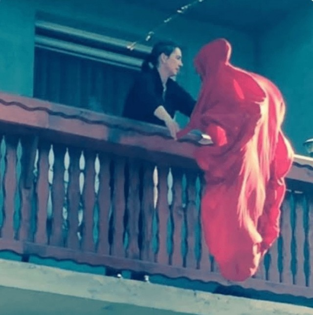 На первый взгляд кажется, что мы стали свидетелями драматической сцены из фэнтези: то ли супергерой в красном плаще готовится к взлету, то ли очень упитанное привидение решило сбежать через балкон. Но если протереть глаза и присмотреться, всё гораздо прозаичнее — кто-то просто решил проветрить простыню. Хотя, согласитесь, выглядит эпично, будто простыня решила начать самостоятельную жизнь!