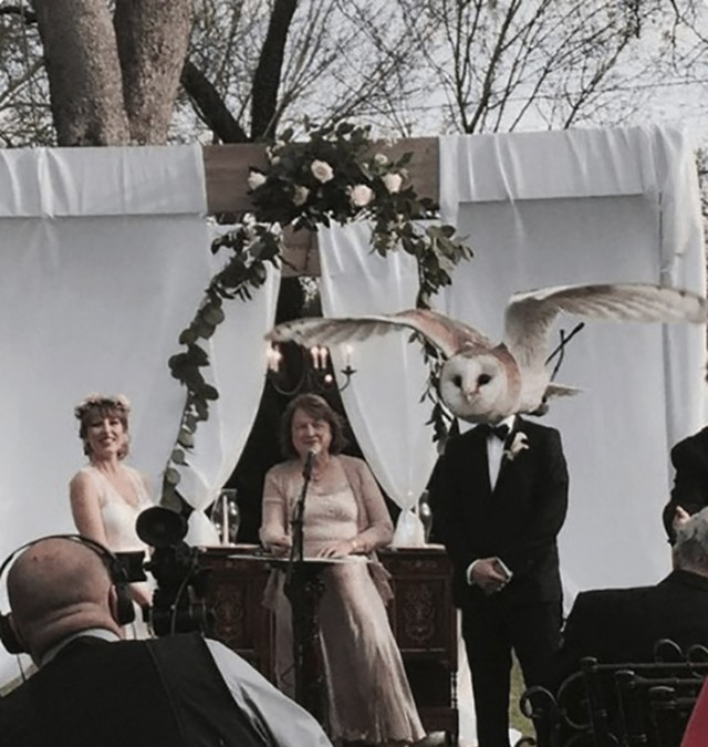 Обычно на церемониях все стоят серьезные, волнуются, плачут, а здесь — одна секунда, взмах крыльев, и готов шедевр на века. Главное, чтобы это была сова не из Хогвардс, а жениху не пришлось выбирать, то ли бросить всё, схватить метлу и умчаться учить заклинания, как мечтал в 11 лет, то ли признать суровую правду — ты опоздал на этот поезд лет на двадцать, и теперь твоя магия — это борщ жены и совместная ипотека. Эх, Букля, где же ты была раньше?!