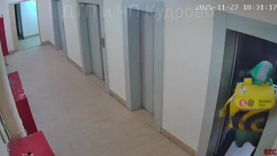 Доставщик еды неожиданно напал на лифт в жилом комплексе на Европейском проспекте в Кудрово. Мужчина наносил удары руками и ногами.