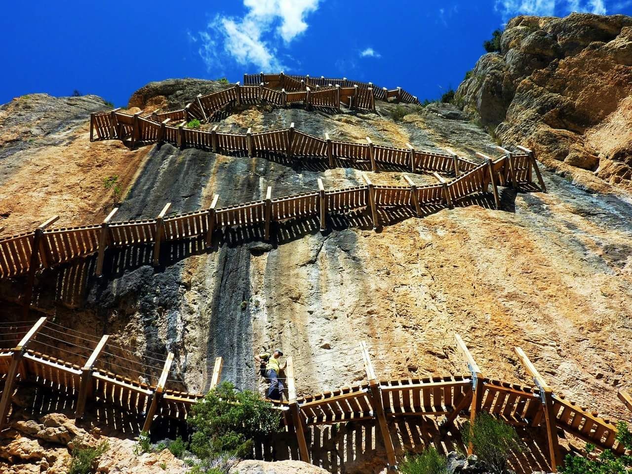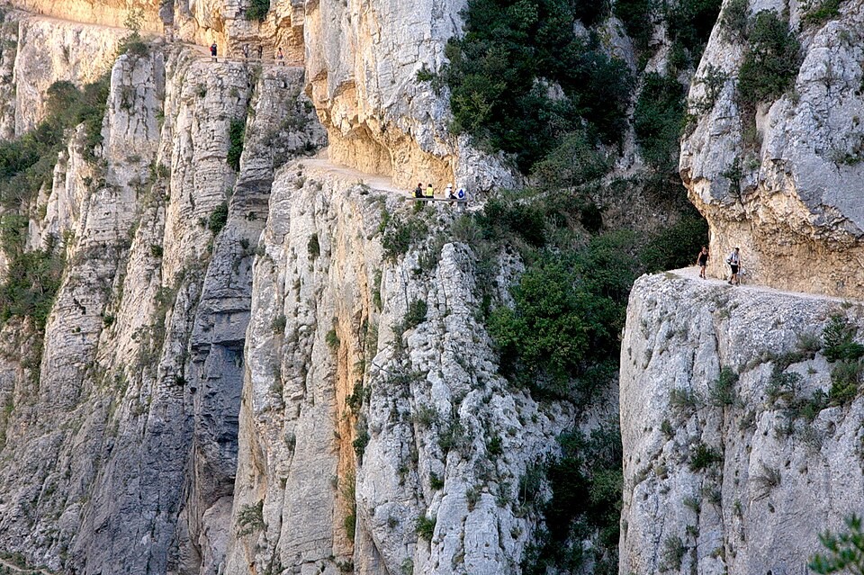 Жемчужиной этих мест стало ущелье Конгост-де-Монт-Ребей. Это глубокий каньон, врезавшийся в скальный массив. Его вертикальные стены обрываются вниз на сотни метров. Для самых смелых путешественников вдоль этих стен проложены узкие пешеходные и даже велосипедные тропы, вырубленные прямо в камне. Они дарят головокружительные виды и позволяют заглянуть в самое сердце ущелья.
