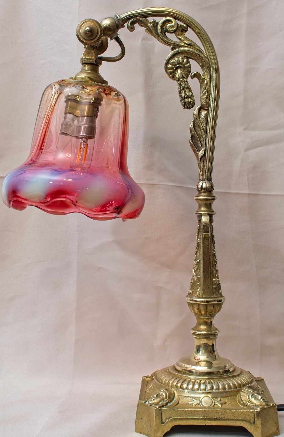 8. Французская латунная настольная лампа из уранового стекла 1920-х годов