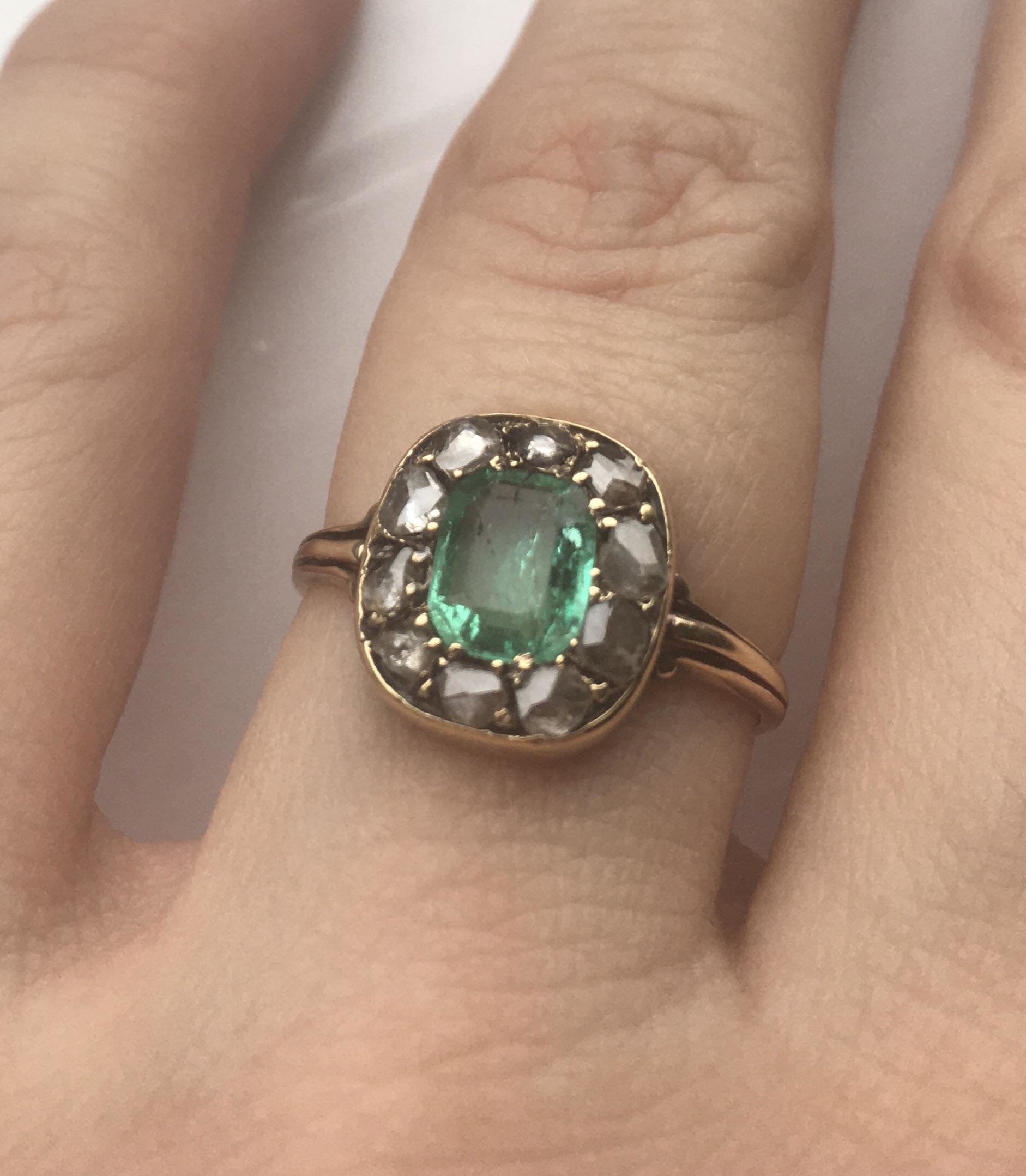 6. Кольцо из золота с изумрудом и бриллиантами позднего георгианского периода