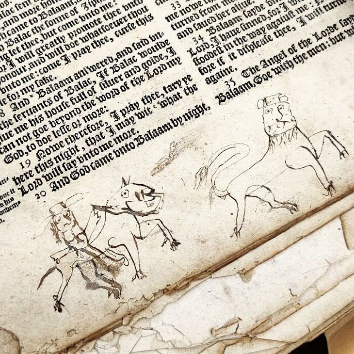12. Совершенно восхитительные каракули XVII века внутри реставрируемой Библии