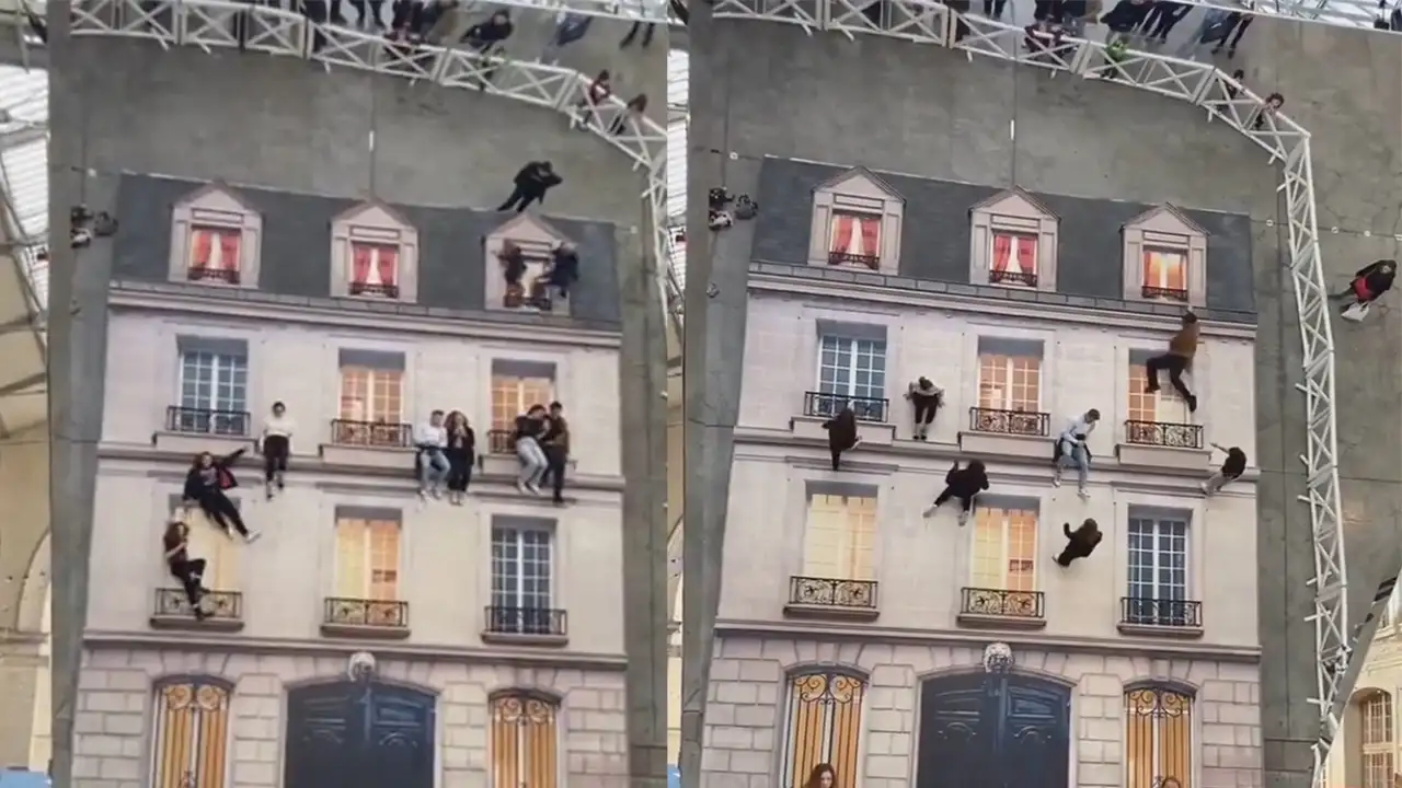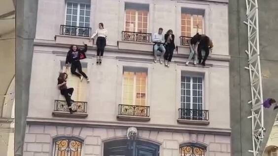Инсталляция Леандро Эрлиха «Bâtiment», которая постоянно переезжает из одного города в другой, позволяет испытать необычное ощущение — победу над гравитацией. Художник разместил на полу своего проекта детализированный фасад здания с окнами и балконами, а напротив установил огромное вертикальное зеркало.