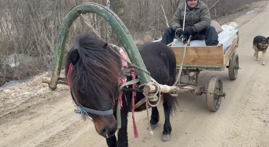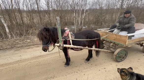 В селе Корёга Буйского района Костромской области местный житель использует труд маленькой лошадки – Пони. Трудяжка всеми силами старается угодить хозяину и тянет гружёную телегу. По словам хозяина, лошадка по имени Памир способна перевезти полтонны груза.