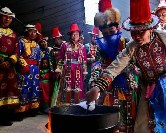 В 2011 году была церемония Три стрелы была признана национальным нематериальным культурным наследием! После того, как стрелы выпущены, лук ломают и бросают рядом с домом невесты. И это не последний костер на этой свадьбе. Когда невеста прибывает в дом жениха, семья жениха разжигает уже два костра по обе стороны тропы. Невеста должна пройти между пламенем, символически проходя «огненное очищение» — ритуал, призванный очистить от несчастий.