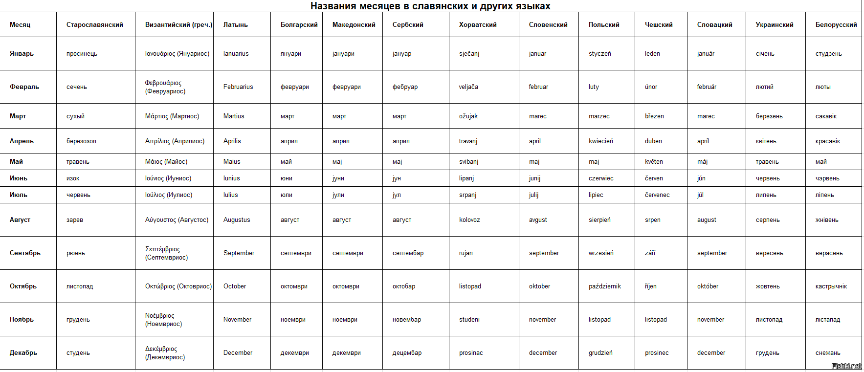 Да, и ещё названия наших месяцев это чистая латынь. Кто-то в своё время продался Византии полностью и лоббировал нововведение в язык.