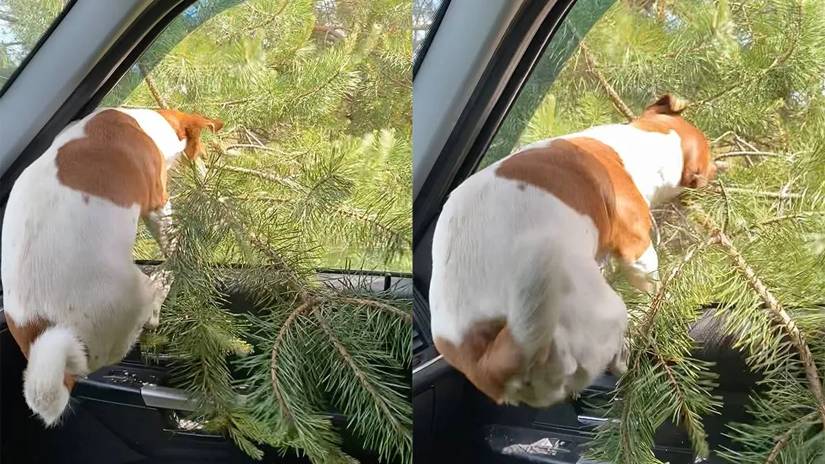 Хозяйка сняла забавный момент, как её собака буквально пытается затащить ветку рождественской елки через окно машины. Настоящий «выбор елки по собачьему вкусу»!