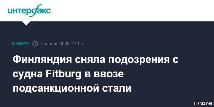 2 января полиция Финляндии сообщила, что не нашла доказательств умысла в порче сухогрузом подводного кабеля и причастности к инциденту России, сообщают местные СМИ. Тем не менее, двое членов экипажа судна Fitburg были задержаны, ещё двоим запретили выезд из страны.