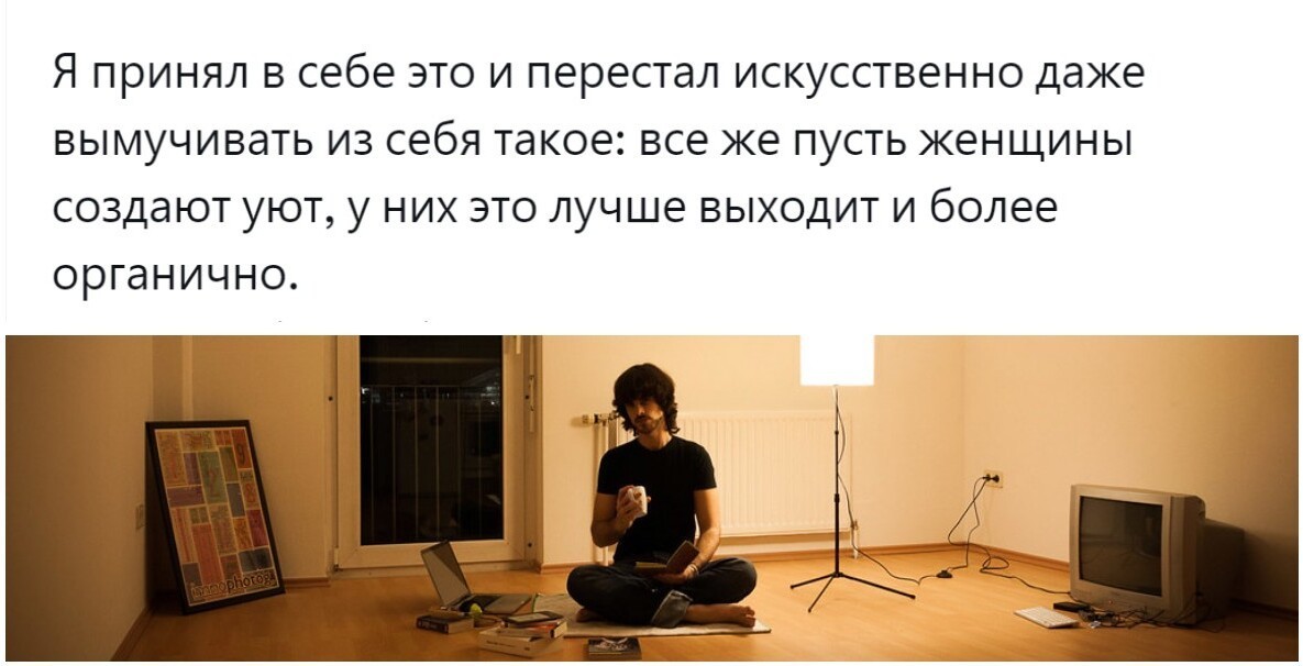 Ну, и, конечно, чтобы интернет стабильно работал, обеспечивая доступ на любимые ресурсы. Безусловно, прохладное отношение к комфорту и всяким милым домашним штукам наблюдается не у всех, но у большинства точно. Пользователи задались целью понять причину такой мужской особенности и выяснили, что парни тоже могут быть требовательными и капризными эстетами, а девушки – пофигистичными аскетичными экстремалками.