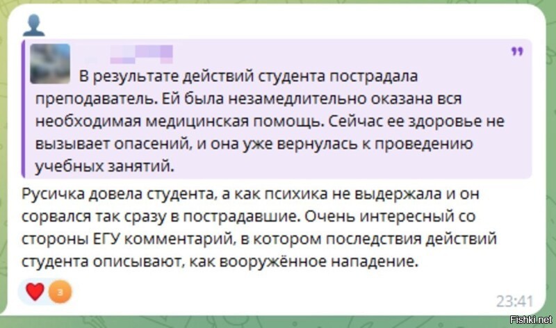 Интересно, что некоторые земляки студента в комментариях отнеслись к его поступку одобрительно. Дескать, довели парня - вот и не выдержал.
