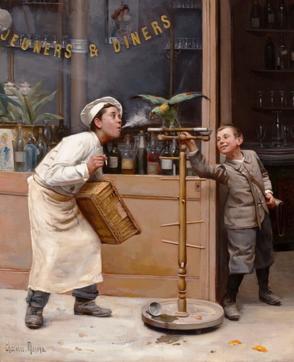 Сюжеты картин Поля Шокарн-Моро легко узнаваемы. Главные герои его полотен — парижские мальчишки. Однако это не просто дети, а юные горожане с определенными профессиями и занятиями: ученики кондитеров, трубочисты, помощники в церкви, разносчики товаров, школьники. Правда, к своим обязанностям они зачастую относятся без особой серьезности.