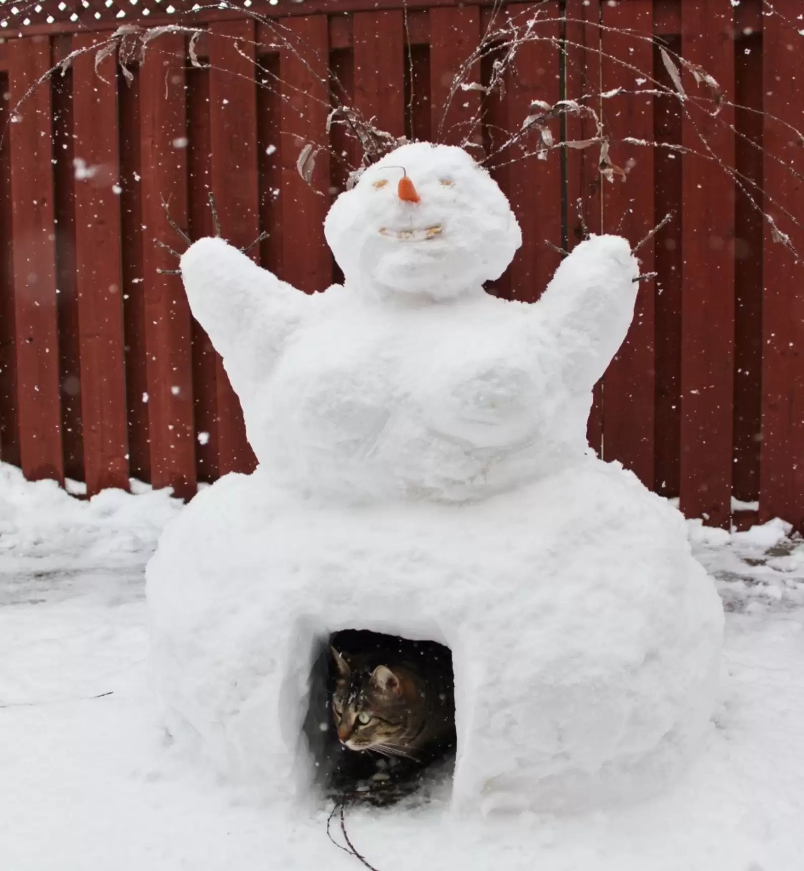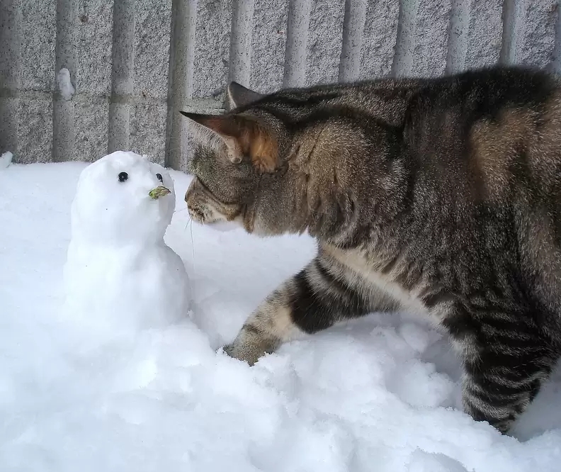 А что, если слепить не просто снеговика, а целого снежного котейку или пёселя? Эти фото доказывают, что встреча домашних любимцев как с обычными снежными человечками, так и со своими копиями рождает невероятно искренние, забавные и трогательные моменты. От любопытного сопения и вежливого игнорирования до дружеских объятий и попыток экспроприировать самое ценное (морковку), эти симпатяги демонстрируют огромный спектр самых разных эмоций от встречи со своими снежными собратьями.