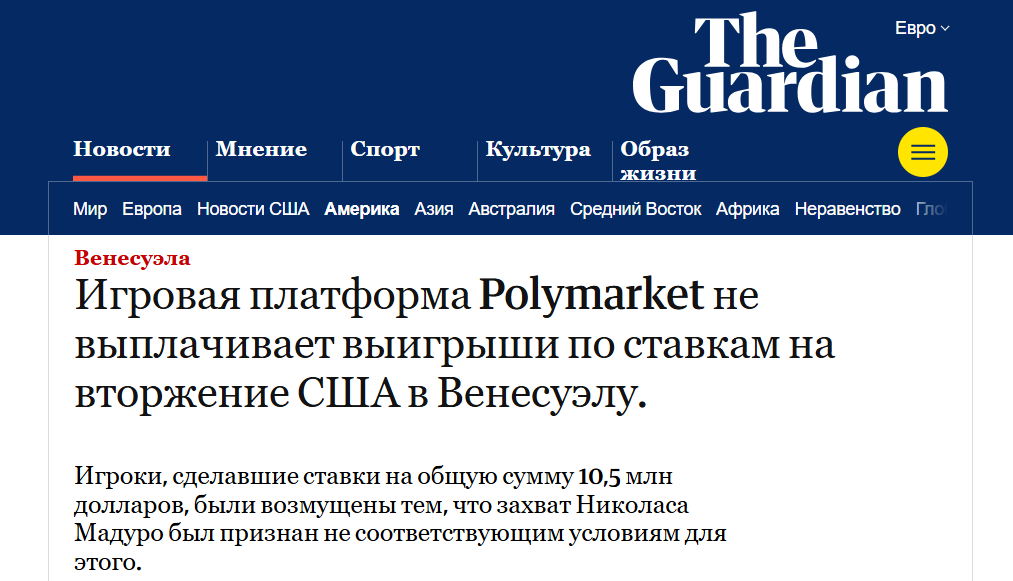 Руководство крупнейшего рынка предсказаний, с невозмутимостью истинных бюрократов, отказалось выплачивать многомиллионные выигрыши по ставкам на «вторжение США в Венесуэлу», внезапно обнаружив в словарях такие тонкие нюансы, о которых не подозревали даже в Пентагоне.