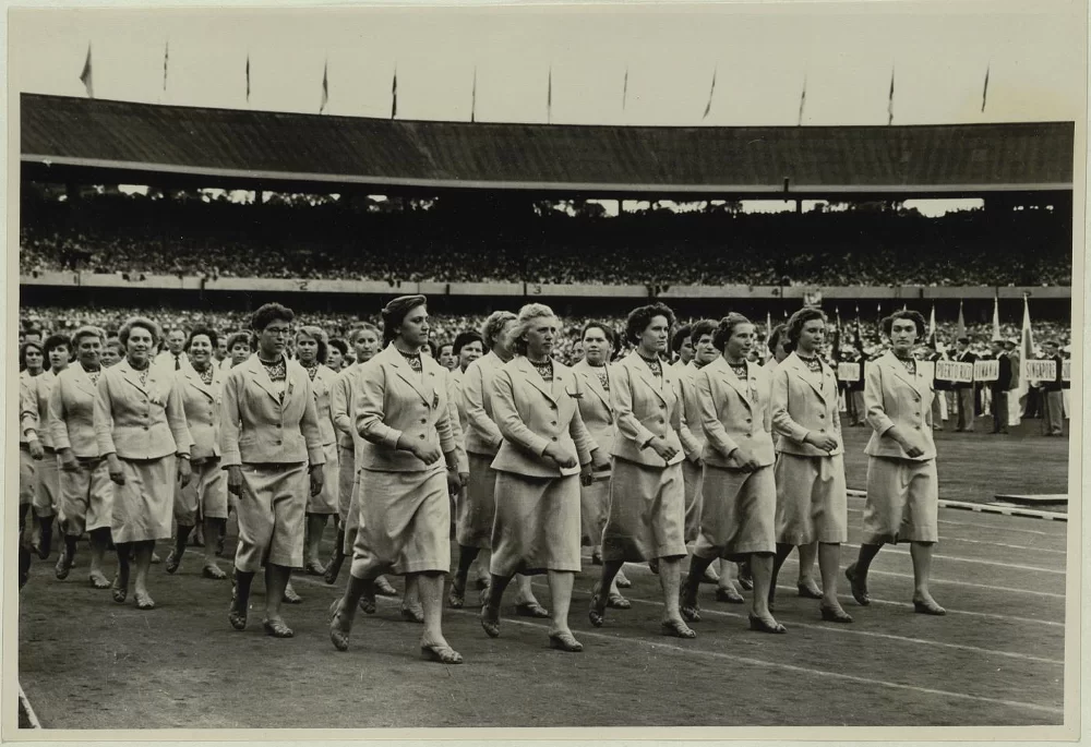 Советская сборная на параде в день открытия Олимпийских игр в Мельбурне.