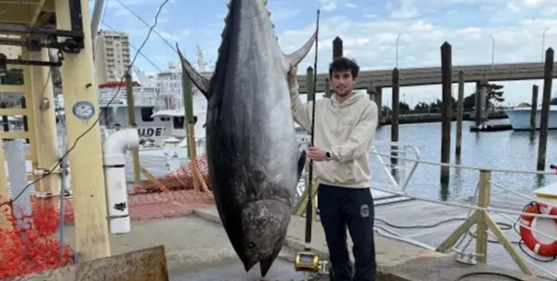 Гиганта получилось поймать у восточного побережья Вирджинии. Улов оказался настолько впечатляющим, что побил предыдущий рекорд, установленный всего днем ранее.