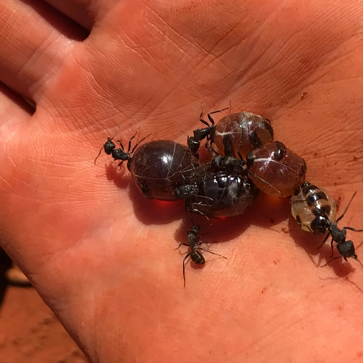 Поэтому муравьи догадались сохранять излишки в особых... капсулах. Наполненные сладким нектаром запасы могут позволить муравейнику функционировать месяцы или даже годы в условиях тотального дефицита калорий. Причём до этого способа додумались сразу несколько не связанных друг с другом родов муравьёв из Австралии, Южной Азии, Африки и Южной Америки.