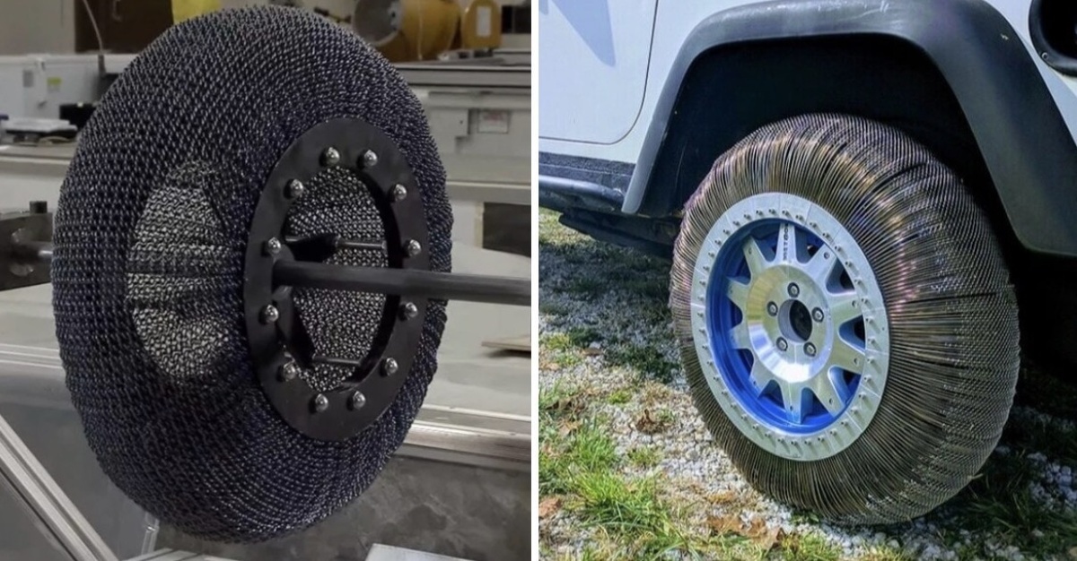 Подобные решения ещё на древних автомобилях обкатывались, но не взлетело по совокупности многих причин. Перед лунной гонкой, в СССР резиновые безвоздушки вроде на ГАЗ ставили, позже наработки пригодились когда колёса для лунохода использовали. У американцев подобная история была, да и сейчас, в среднем, раз в 5 лет, в новостях проскальзывает, что какой-нить Мишлен планирует выпустить серию таких шин.. но, всё это очень- очень узкоспециализированное решение. И для массового рынка, минусы перевешивают плюсы.