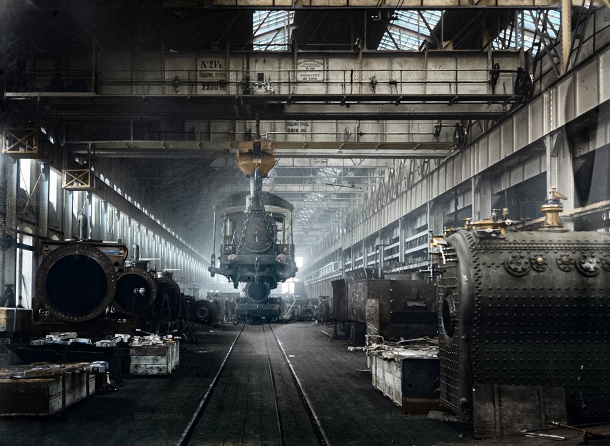 Внутренний вид паровозосборочного цеха. Сормово. Нижегородская губерния, 1906 год.