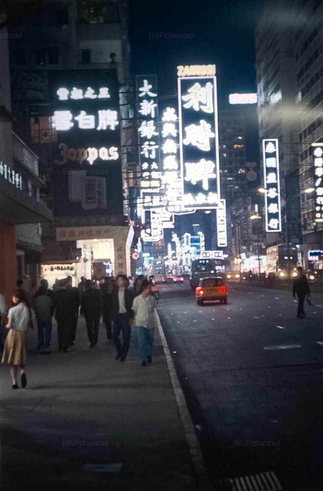 Вид на город Гонконг вечером, 1966 год.