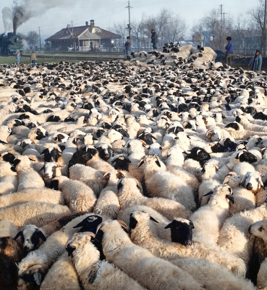 Овцы, заготовленные торговой организацией для перевозки. Внутренняя Монголия, Китай, 1950-е.