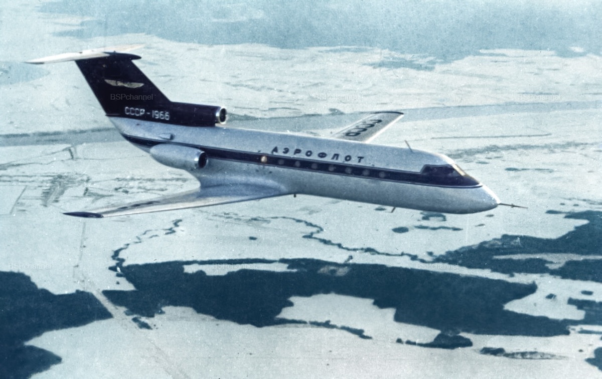 Як-40 - пассажирский самолет, разработанный в СССР в 1960-е годы в ОКБ имени А. С. Яковлева. Выпускался Саратовским авиационным заводом, 1966 год.