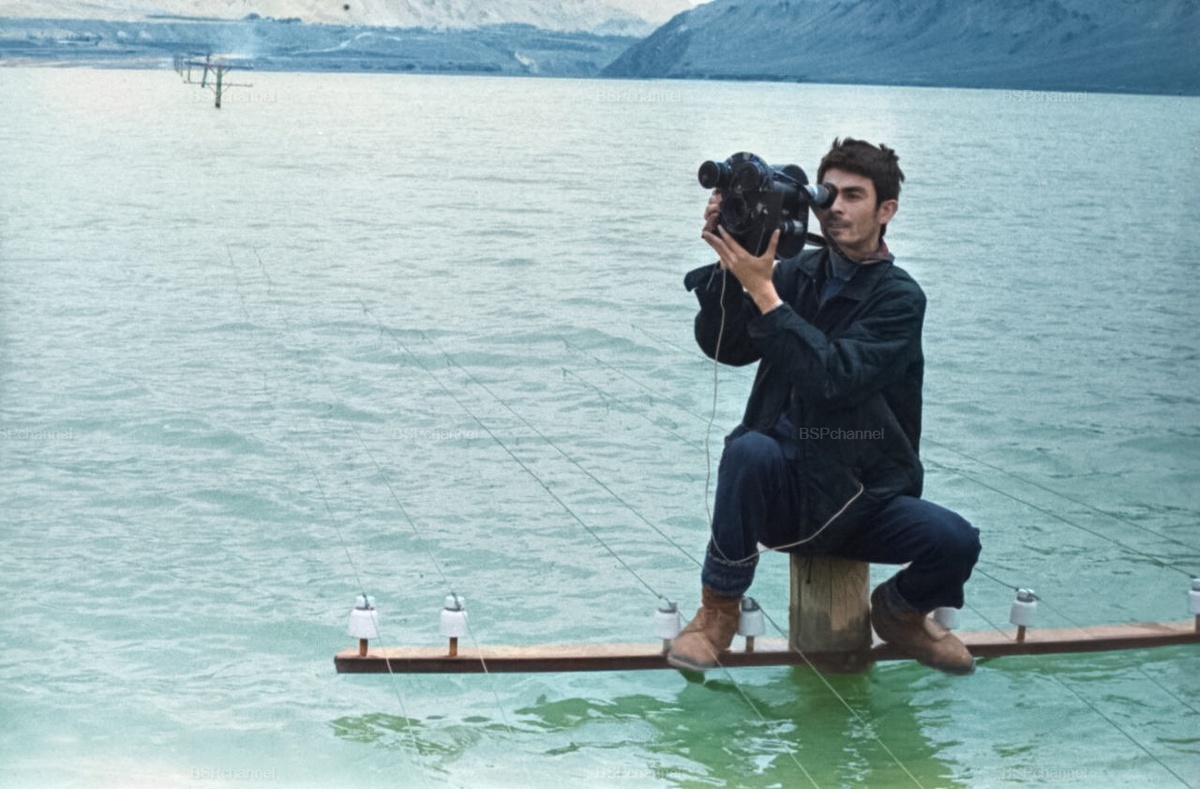Наводнение в селении Айни. Оператор таджикской телестудии Мансуров снимает последствия наводнения. Таджикская ССР, 1964 год.