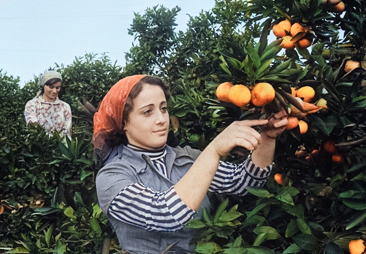 Сбор мандаринов в Грузинской ССР, октябрь 1978 года.