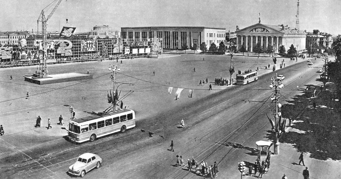 Главпочтамт на Ленинском проспекте и легендарные московские троллейбусы, которые бегали по Минску с 1952 по 1970-е.